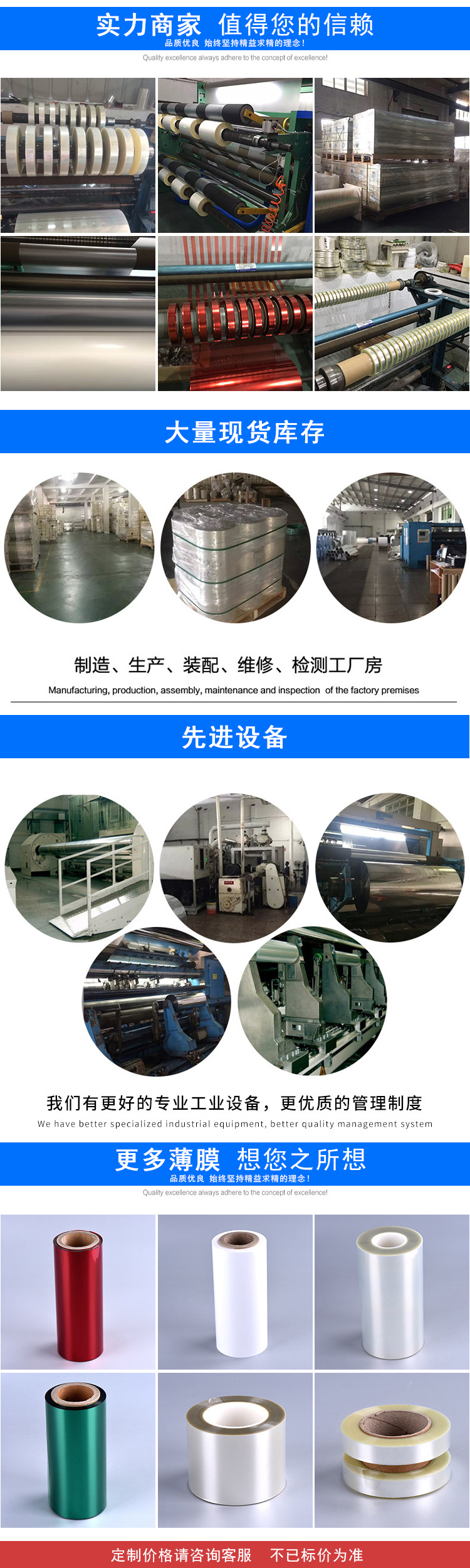 2.宽度和长度:薄膜成卷或成盘供应。宽度10-620mm。根据用户要求,宽度和长度由供需双方协商确定,可供带状。