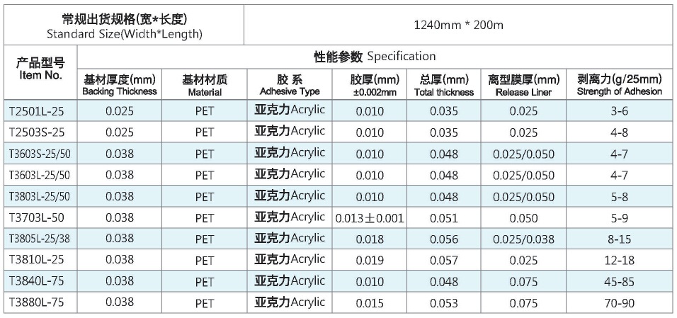 亚克力25-38系列双层保护膜