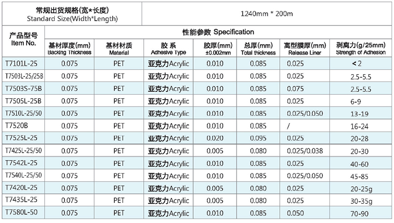 低粘性,保护膜表面光滑平整;
