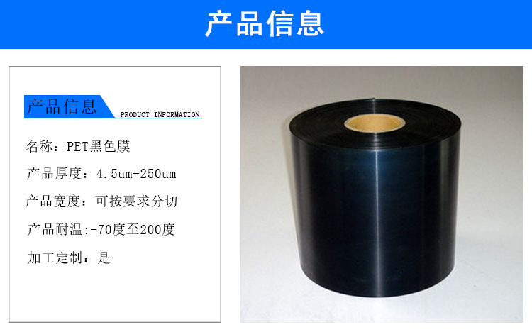 黑膜PET膜(特殊厚度有4.5um/6um/9um/12um,常规厚度有25um/50um/75um/100um/125um/188um/250um),欢迎亲们咨询。