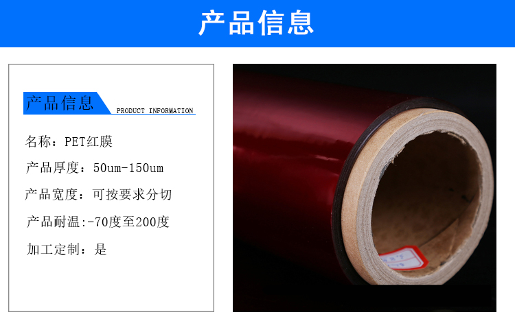 红色PET有中国红和梅红两种颜色,膜常规厚度50um/75um/100um/125um/150um,欢迎亲们咨询。